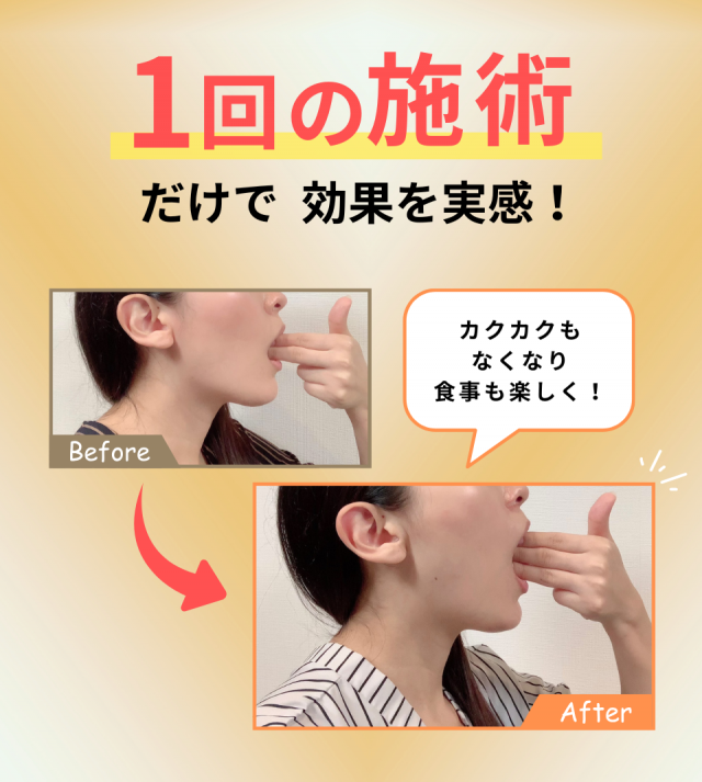 体液循環がよくなることで、顎周りの筋肉が緩まり、顎関節の動きがスムーズになることで、顎関節症を改善に導くことができるのです。